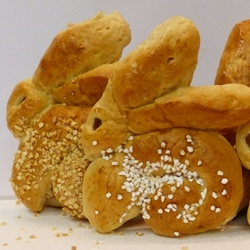 Osterlämmer aus Bisquitteig, mit Puderzucker bestaubt oder natur